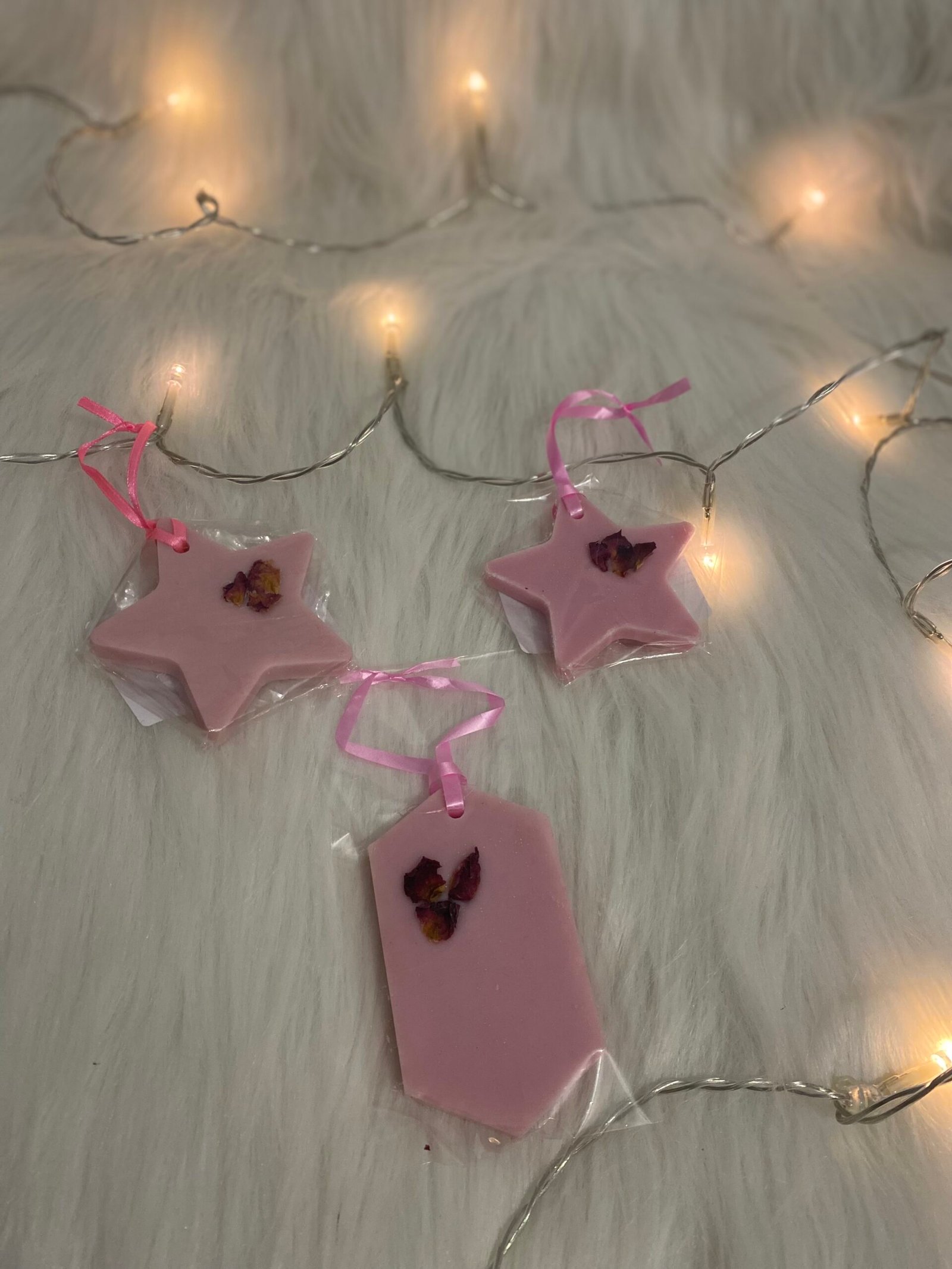 Suspension parfumée fabriquée avec une cire végétale et parfum de grasse à mettre dans votre dressing, armoire, ou encore dans un tiroir.